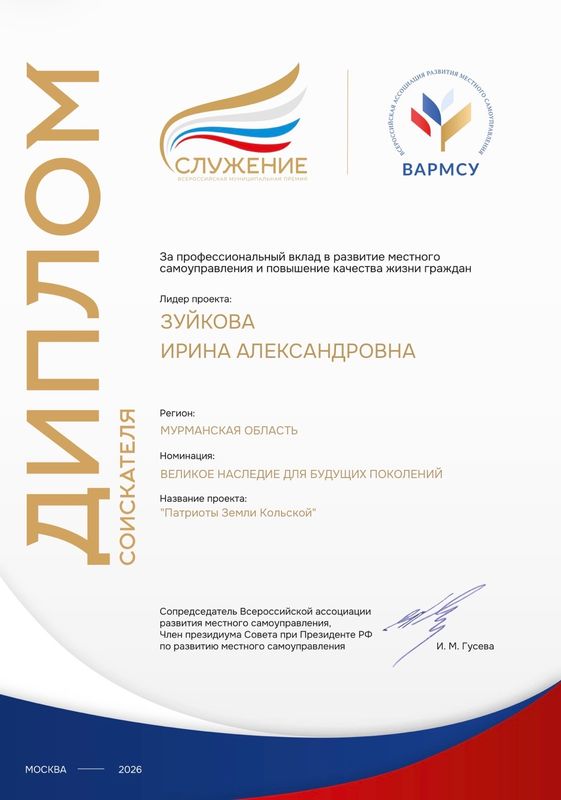 Всероссийская муниципальная премия «Служение» проводится по поручению Президента Российской Федерации Владимира Путина.