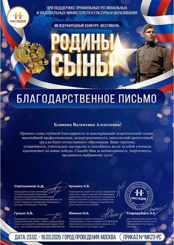 Подведены итоги Международного конкурс-фестиваля при поддержке профильных региональных и федеральных министерств культуры образования «Родины сыны».